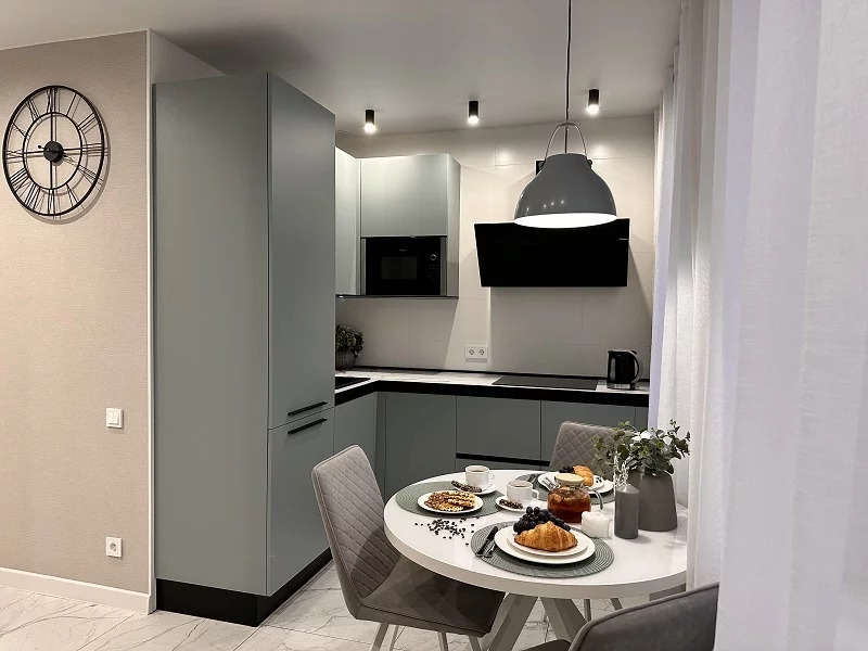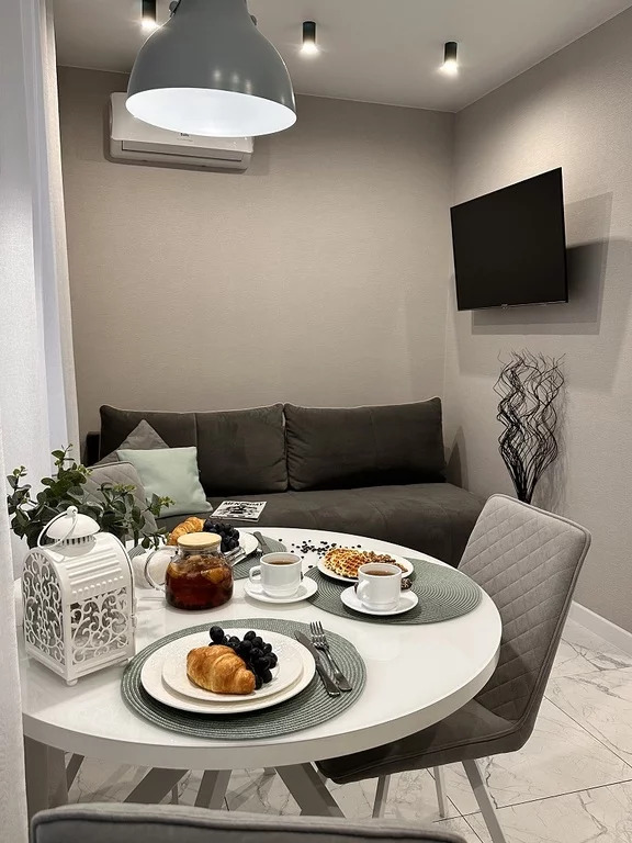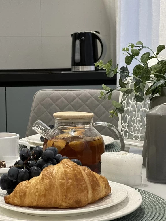 Апартаменты очень уютные, выполнен дизайнерский ремонт. Для комфортного пребывания есть всё самое необходимое: бытовая техника (холодильник, варочная панель, микроволновая печь, посудомоечная и стиральная машины, вытяжка, кондиционер), чайник и чай (кофе), предметы гигиены (шампунь, гель для душа, ватные диски, ватные палочки, жидкое мыло), посуда и постельное белье, полотенца, фен, телевизор с плоским экраном, утюг, гладильная доска и сушка, интернет Wi-fi).